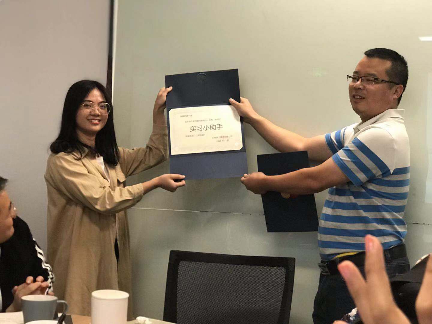 王冬来总监给黄小苗同学颁发“实习小助手”证书