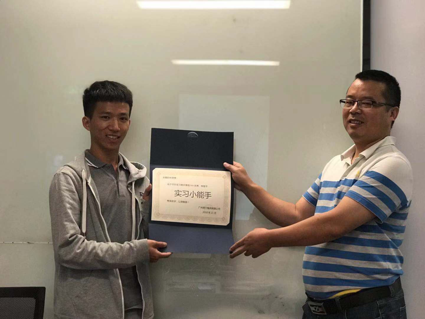 王冬来总监给林荣贵同学颁发“实习小能手”证书
