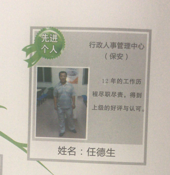 自2007年入职到现在已经将近12年的时间里,每天日常工作态度积极向上,在保证自己的工作质量之余还能积极帮助其他员工,成为大家的好帮手、好伙伴,他不用监督、不用督促,默默无闻的坚持在自己平凡的岗位上,为公司创造着无限的价值。